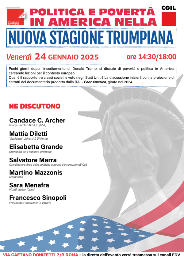 Si è tenuta venerdì 24 gennaio, pochi giorni dopo l’insediamento di Donald Trump, in Fondazione Di Vittorio l'iniziativa, co-organizzata insieme alla Cgil Nazionale, dal titolo "Politica e povertà in America nella nuova stagione Trumpiana".
