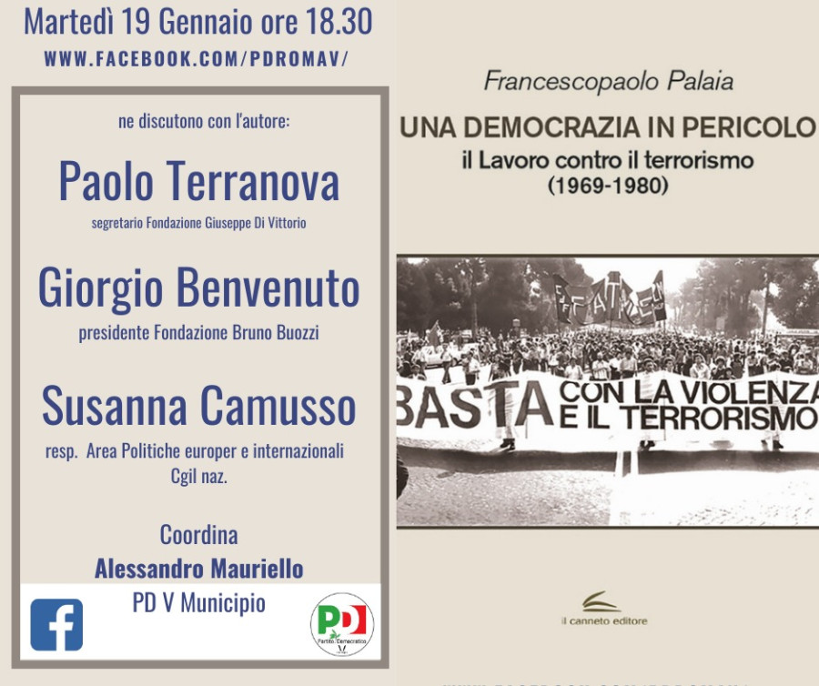 Il volume di Francescopaolo Palaia, “Una democrazia in pericolo. Il lavoro contro il terrorismo (1969-1980)", sarà presentato martedì 19 gennaio 2021 alle ore 18.30 (www.facebook.com/pdroway).