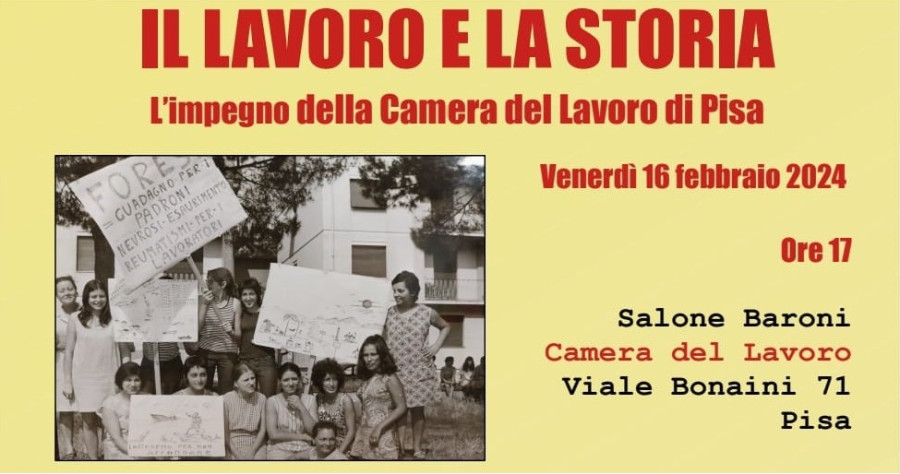 Si svolgerà a Pisa il pomeriggio del 16 febbraio, presso la Camera del Lavoro, l’iniziativa “Il lavoro e la storia. L’impegno della Camera del lavoro di Pisa”.