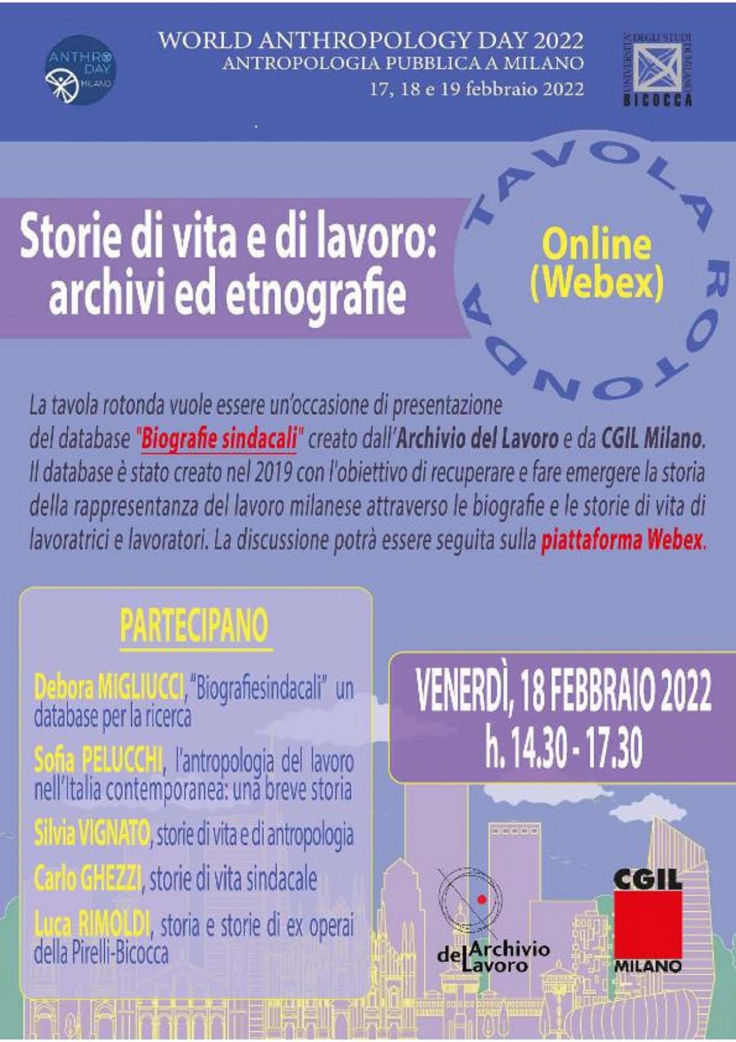 L’Archivio del Lavoro di Milano, la CGIL di Milano sono gli organizzatori della tavola rotonda, “Storie di vita e di lavoro: archivi ed etnografie”. Nel corso dell’iniziativa che si svolgerà venerdì 18 febbraio 2022 alle ore 14.30 sarà presentato il database “Biografie sindacali” creato dall’Archivio del Lavoro e da CGIL Milano.
