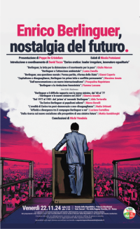 Nel quarantennale della scomparsa di Berlinguer, sulla scorta di un ragionamento di David Tozzo e di Mattia Gambilonghi (Fondazione Di Vittorio), da un’idea e su iniziativa del capogruppo al Senato Peppe De Cristofaro, Alleanza Verdi e Sinistra ha organizzato per il 22 novembre prossimo l'iniziativa dal titolo "Enrico Berlinguer, nostalgia del futuro".